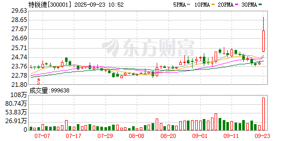 数据宝统计,截至09:49,特锐德成交额17.08亿元,创2024年10月9日以来新高。最新股价上涨19.99%,换手率6.02%。上一交易日该股全天成交额为3.85亿元。(数据宝)
